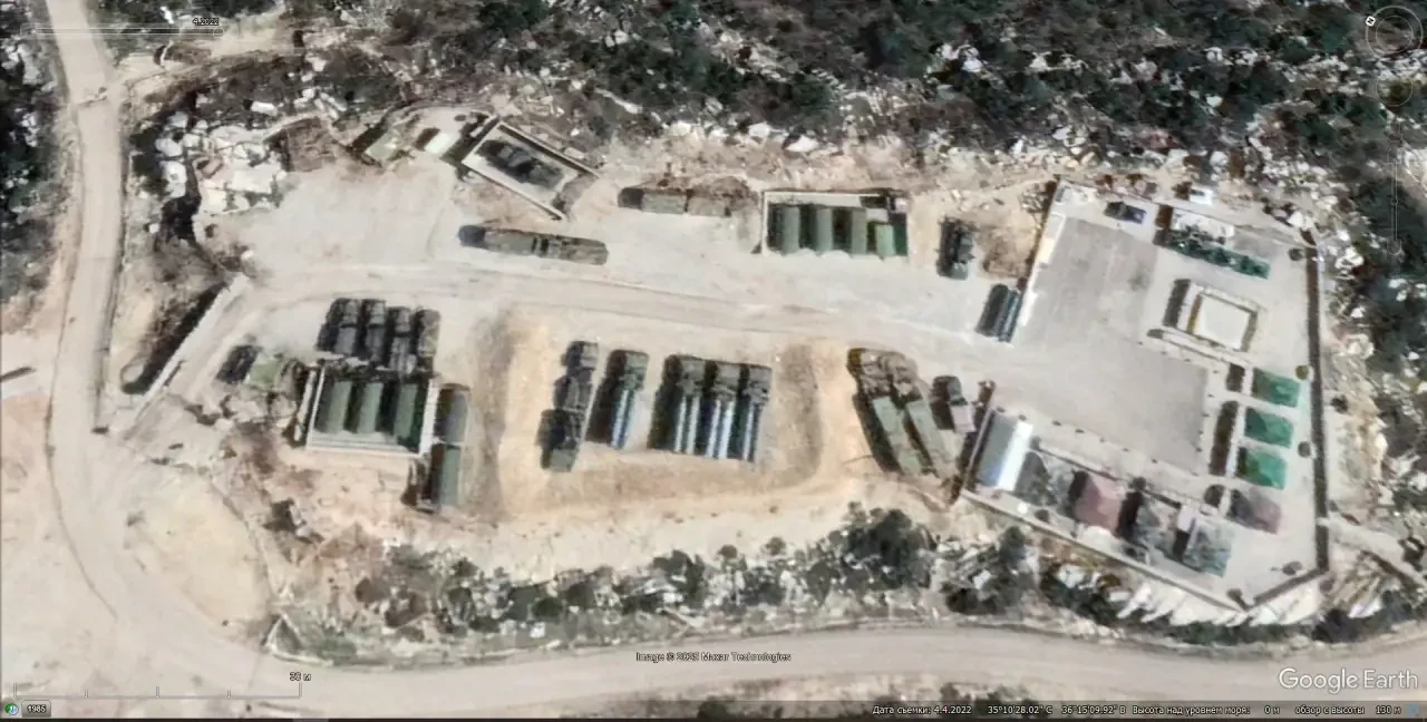 Спутниковый снимок Googlе Еarth: позиция ЗРС С-300ПМ2 в 20 км к северо-западу от города Масьяф. Снимок сделан в апреле 2022 года