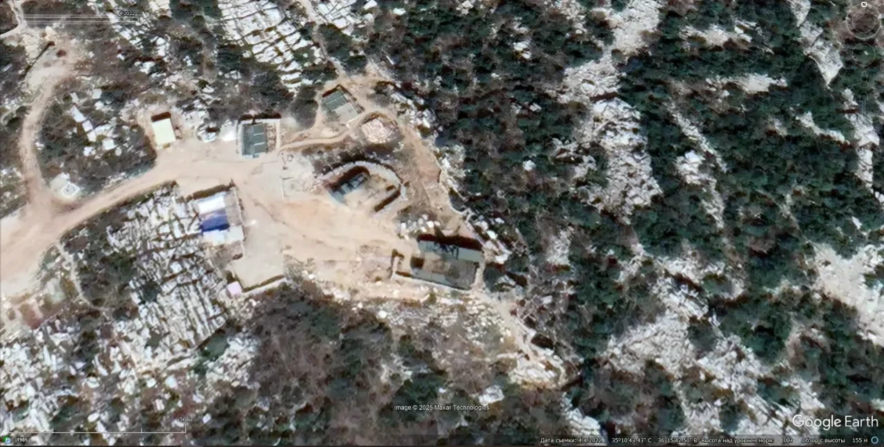 Спутниковый снимок Googlе Еarth: ещё одна позиция ЗРС С-300ПМ2 к северо-западу от города Масьяф. Снимок сделан в апреле 2022 года
