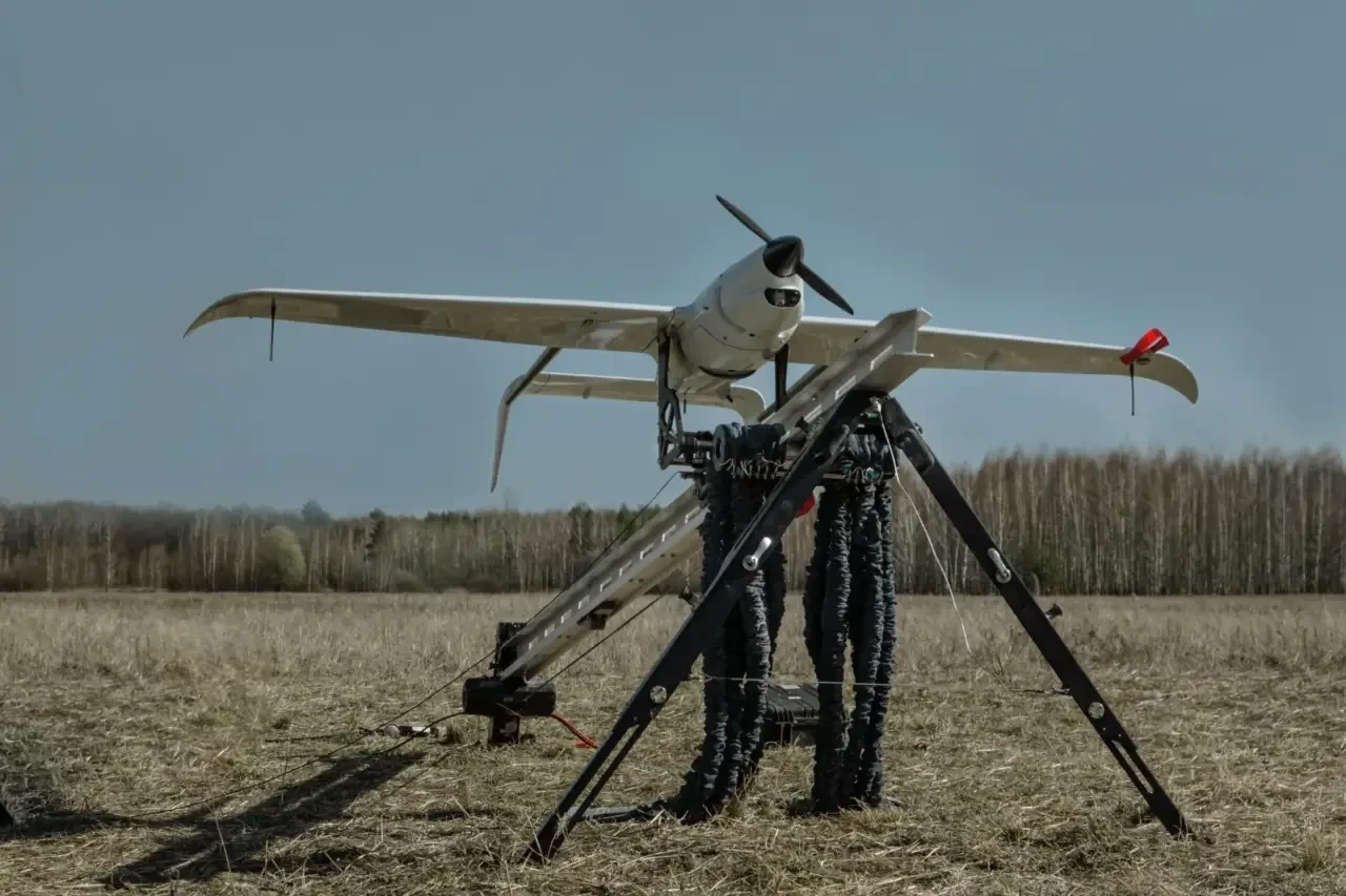 БПЛА с бензиновым двигателем на пусковой направляющей