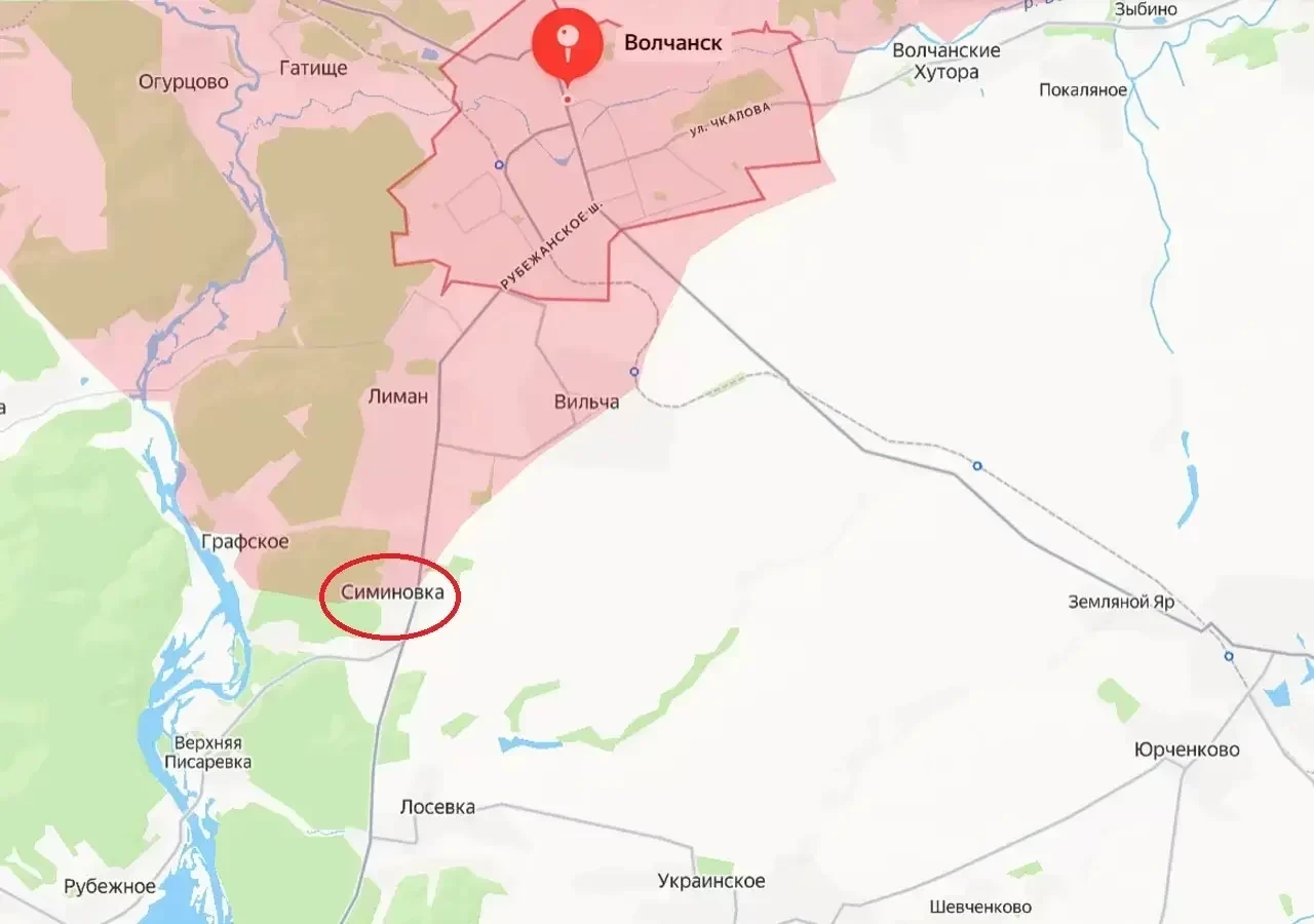 Российские войска продолжают развивать наступление в окрестностях города Волчанск на севере Харьковской области. В результате интенсивных боестолкновений штурмовые подразделения «северной» группировки нашей армии сломили сопротивление противника и освободили населенный пункт Симиновка (до 2016 года - Красноармейское первое) к югу от Волчанска.