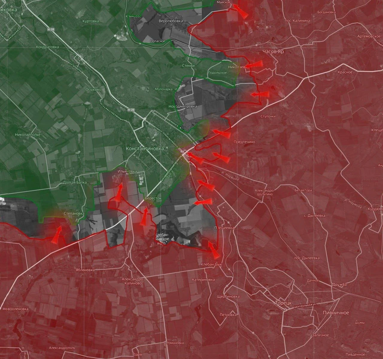 На Торецком участке фронта севернее Торецка идут ожесточённые бои. Группировка «Центр» наступает по обоим берегам реки Казённый Торец в сторону Новогригорьевки. Основная цель этого манёвра - выход к Дружковке, что может радикально изменить обстановку на всём участке.