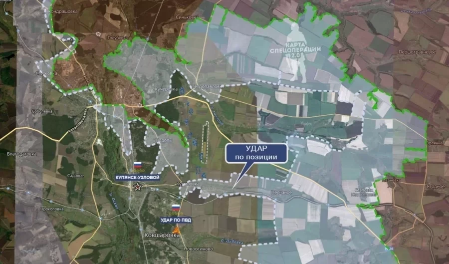 По информации Генштаба, боевые действия в настоящее время продолжаются южнее Купянска-Узлового. Столкновения фиксируются в районах населённых пунктов Ковшаровка и Глушковка, расположенных на левом берегу реки Оскол. Российские подразделения продолжают наступательные действия на данном участке.