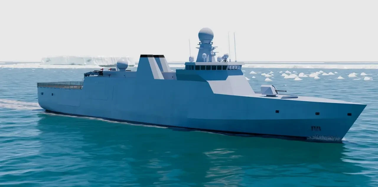 120 Naval Polar – это самый крупный корабль в семействе O1. Он разработан специально для операций в Арктической и Антарктической зонах и сочетает в себе функционал боевого корабля с возможностями ледокола.