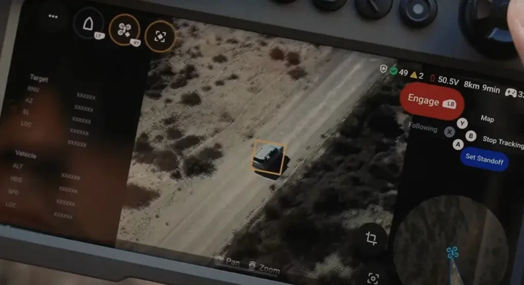 В зависимости от различных факторов, БПЛА может работать в режиме дистанционного управления или самостоятельно. В последнем случае видеосигнал с камеры обрабатывается ИИ, который должен распознавать потенциальные цели и брать их на сопровождение. По всей видимости, обработка данных распределяется между самим БПЛА и операторским пультом.
