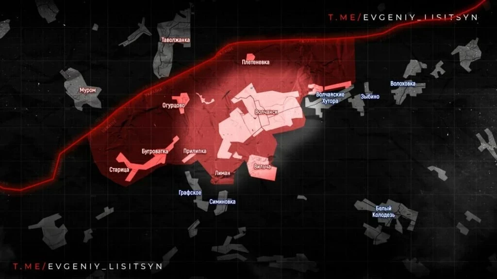 Кроме того, российские подразделения начали бои за населённый пункт Чугуновка и продвинулись в районах Хатнее и Зарубинка. На Великобурлукском направлении также отмечено продвижение.