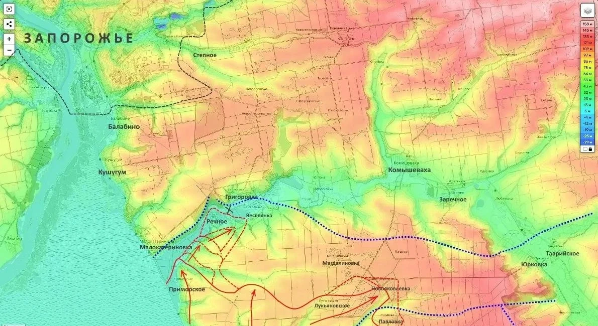 Очень важный успех зафиксирован ближе к руслу реки Днепр. Министерство обороны РФ объявило о занятии населенного пункта Речное. Несмотря на скромные размеры села, его освобождение знаменует собой важный тактический сдвиг - это продолжение уверенного наступления российских сил по долине реки Конка.