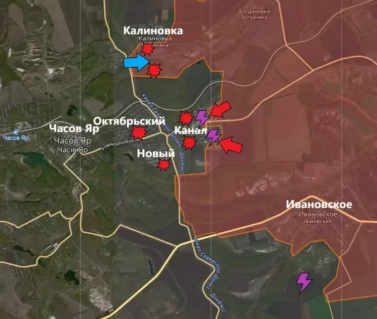 Карта боевых действий под Часов Яром на сегодняшний день, 13.06.2024