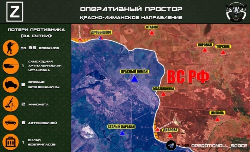 На Красный Лиман наши продолжают наступать с северо-востока, также продвигаются в южной части города. Идут бои в Святогорске, Александровке и Яровой.