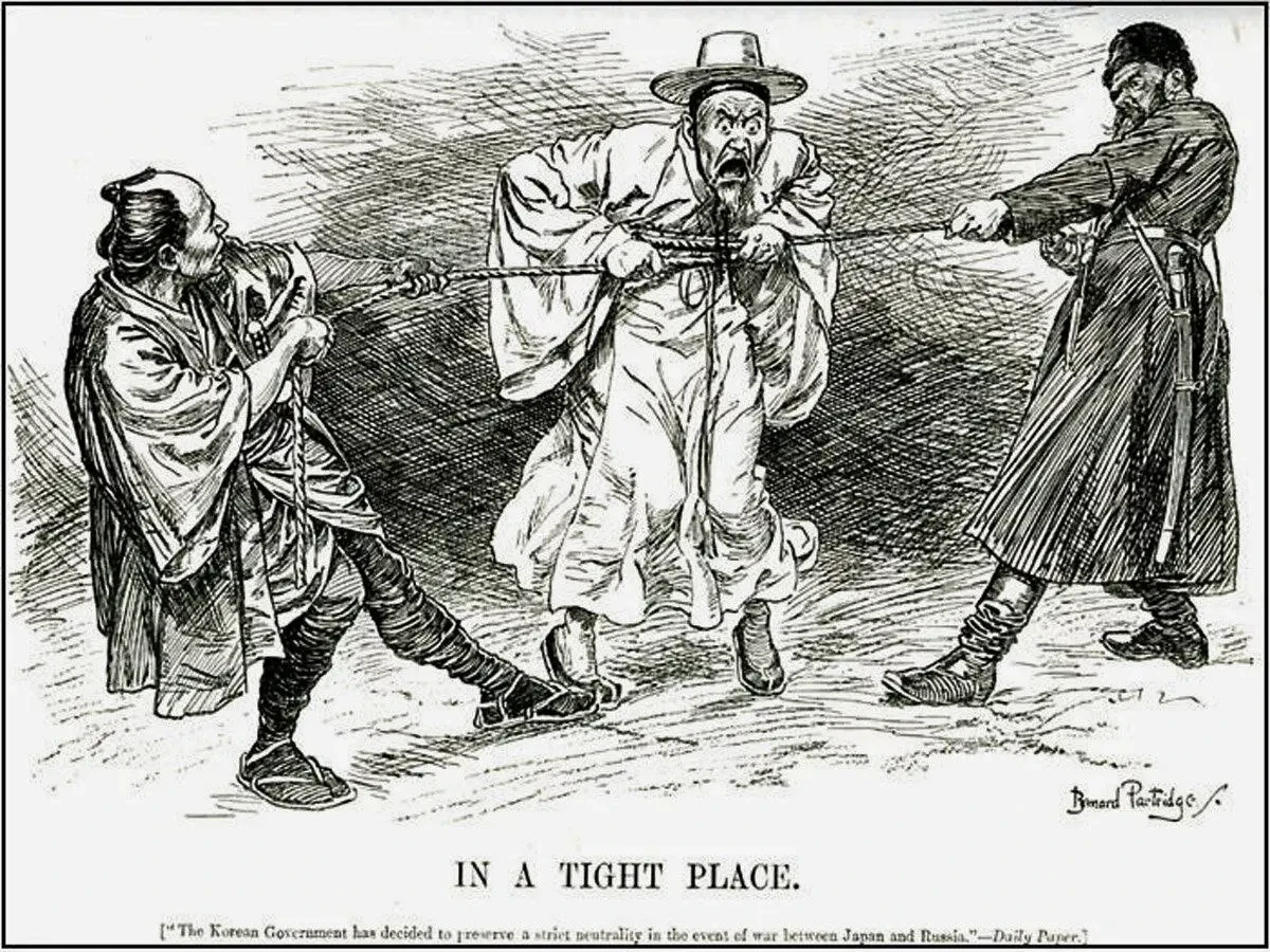 Почему Япония не аннексировала Корею сразу, после разгрома Китая? Оставался ещё один претендент на Страну Утренней Свежести — Россия. С ней японцы решили вопрос в ходе Русско-японской войны. С США и Англией император Мэйдзи заключил договоры о невмешательстве в политику Японии в отношении Кореи. И провозгласили страну своим протекторатом. Императорская армия была сокращена с 20 тысяч человек до тысячи, полностью подконтрольной японцам стала судебная система — все судьи-корейцы были уволены, а на их места назначены японцы, вся внешняя политика императором Коджоном ведётся только через японский МИД.