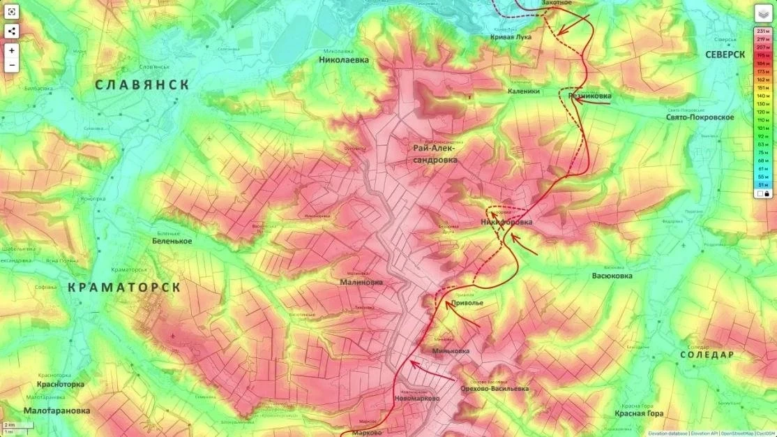Достигнутые результаты позволяют ВС РФ приблизиться к Славянско-Краматорской агломерации с западного направления. От передовых позиций российских подразделений до города Николаевка, который считается восточной частью этой агломерации, остается порядка десяти километров. Такое расстояние уже дает возможность установить как минимум частичный огневой контроль над маршрутами снабжения противника в районе Николаевки.