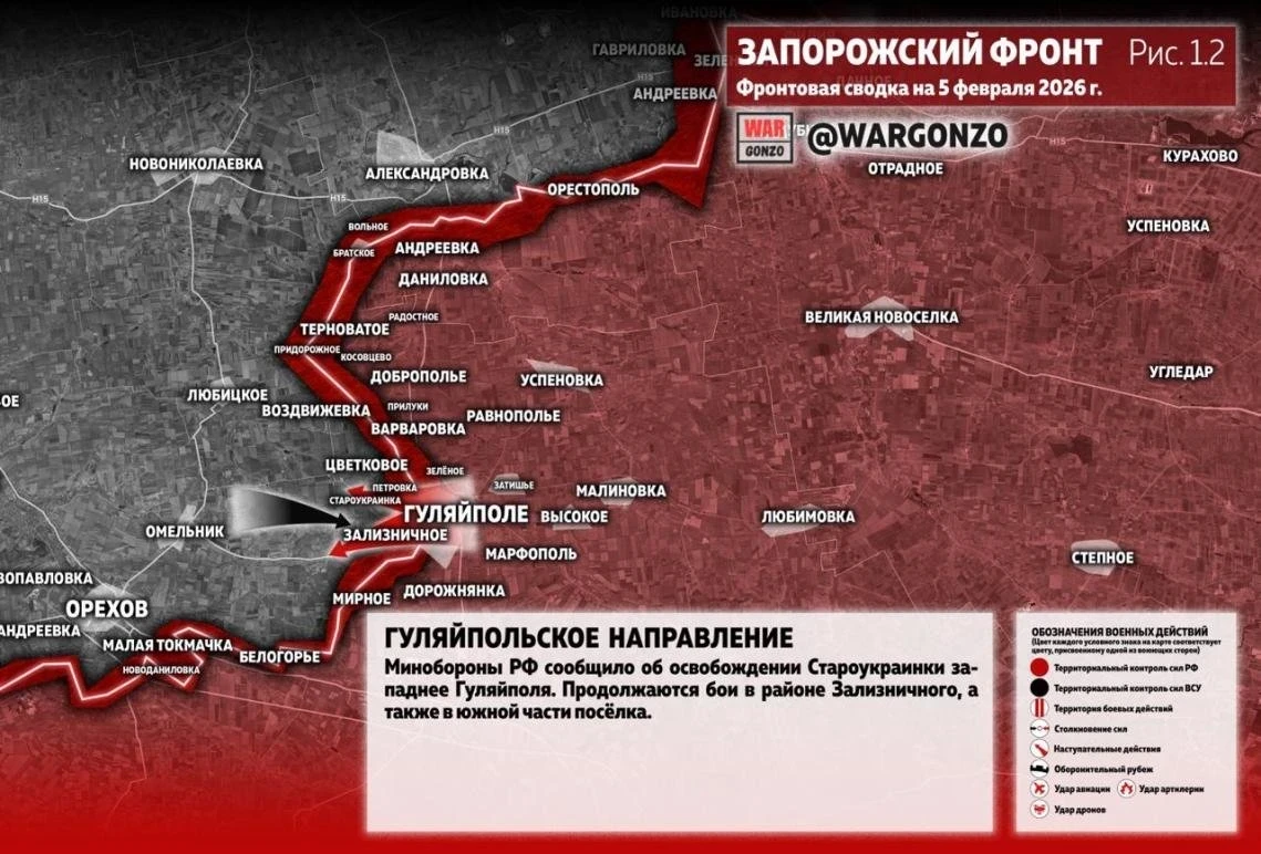 На Запорожском фронте важным событием стало освобождение населённого пункта Староукраинка, расположенного западнее Гуляйполя. Как сообщает военный обозреватель Юрий Подоляка, этот тактический успех имеет стратегические последствия для всей линии обороны противника на данном участке.