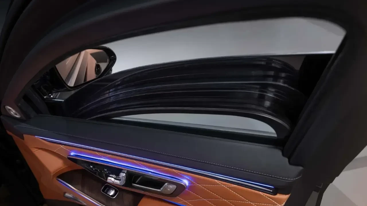 Для задних пассажиров предусмотрены съёмные пульты (два) MBUX, позволяющие управлять функциями автомобиля — климат-контролем, солнцезащитными шторками. Размер дисплеев, которые размещены за передними сиденьями, увеличен до 33,3 см. Экраны оснащены встроенными HD-камерами и подходят для деловых видеоконференций через Microsoft Teams, Zoom и Webex.