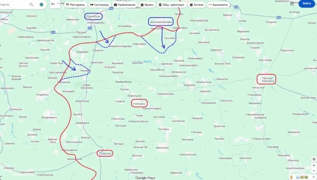 "Также нанесён удар из района Покровского и удары севернее Терноватого, здесь противник пытается вернуть под свой контроль этот важный населённый пункт. Пока здесь условная серая зона, но шансы у противника вернуть его довольно большие", - пояснил военный блогер.