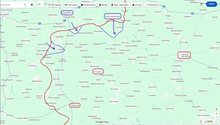 "ВСУ контратакуют на правом фланге российской группировки, которая наступает на востоке Запорожской области. Наступление идет со стороны Покровского и Великомихайловки с целью рассечь российские силы и зайти им в тыл", - отмечают аналитики.