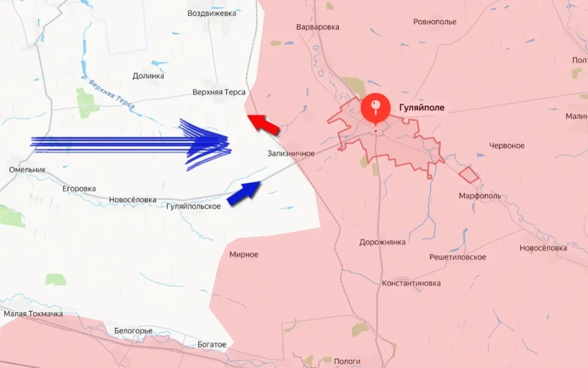 Зализничное находится к западу от Гуляйполя, и противник старается пробиться к освобождённому нашими войсками городу и вернуть под контроль утраченные ранее позиции к западу от него.