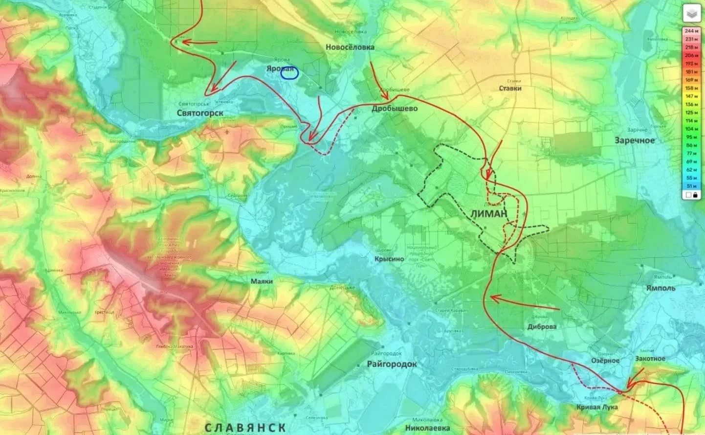 Расширен участок территории на западном его берегу, что сокращает расстояние до Краматорска, сообщает "Военное обозрение".
