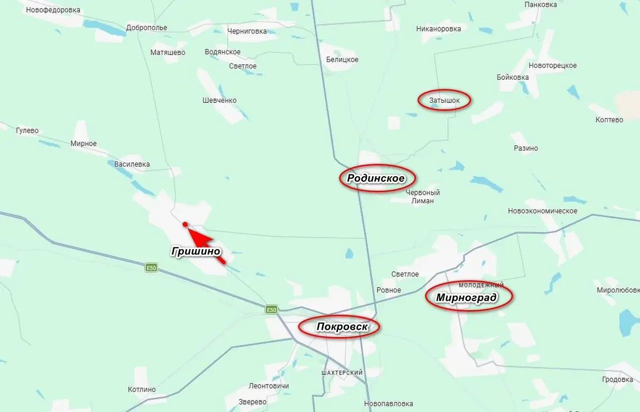 ВС РФ продвинулись в Гришино под Покровском, закрепившись в центре города