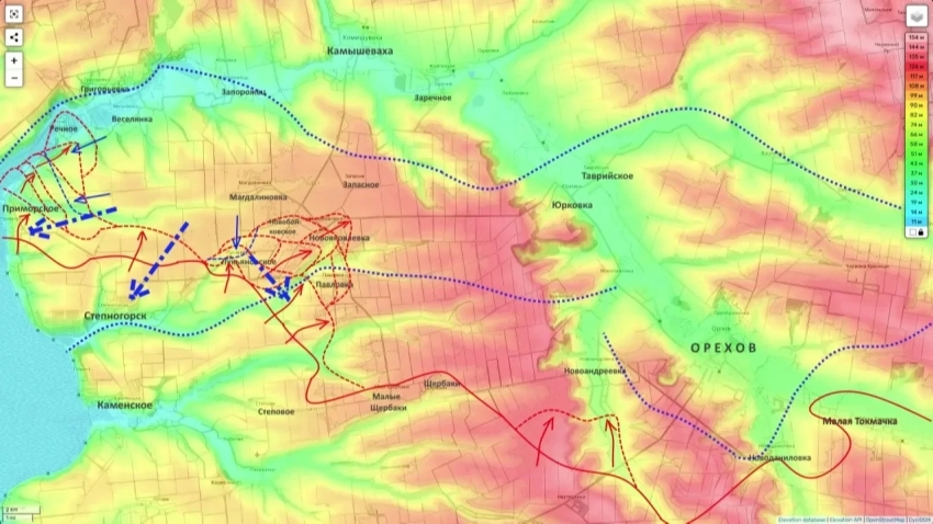 Срезание «Лукьяновского выступа»: основная цель Киева - ликвидировать вклинивание ВС РФ в районе н.п. Лукьяновское (северо-восточнее Степногорска). Враг стремится отбросить наши части за Степногорск и, в идеале, прорваться к Каменскому. На данный момент поселок разделен: север - под ВСУ, юг - под контролем российских бойцов.