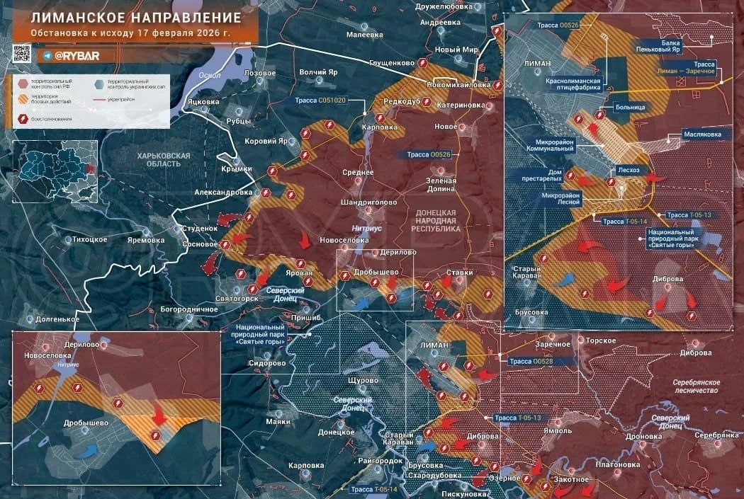 Днём ранее появились новости, что российским подразделениям удалось зацепиться за северную часть посёлка Дробышево. По сути, сейчас движение к Красному Лиману идет одновременно с севера и юга, а боестолкновения начинаются уже непосредственно на подступах к городу.