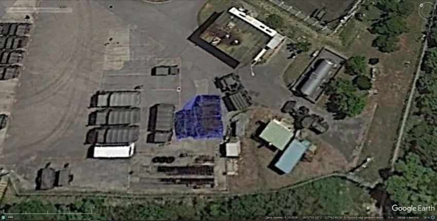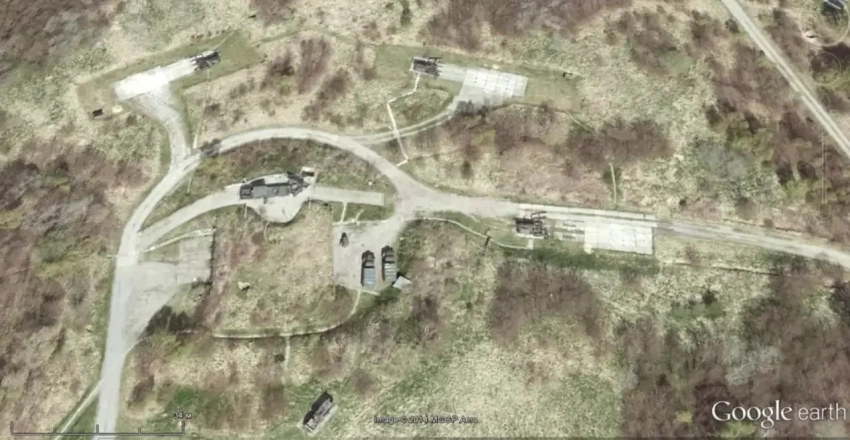 Спутниковый снимок Google Earth: ЗРК Туре 81 на базе Корияма, префектура Фукусима. Снимок сделан в мае 2016 года