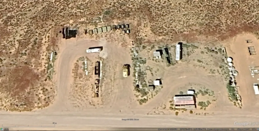 Спутниковый снимок Google Earth: СОУ 9А310М1 из состава ЗРК «Бук-М1» на полигоне Тонопа. Снимок сделан в мае 2024 года