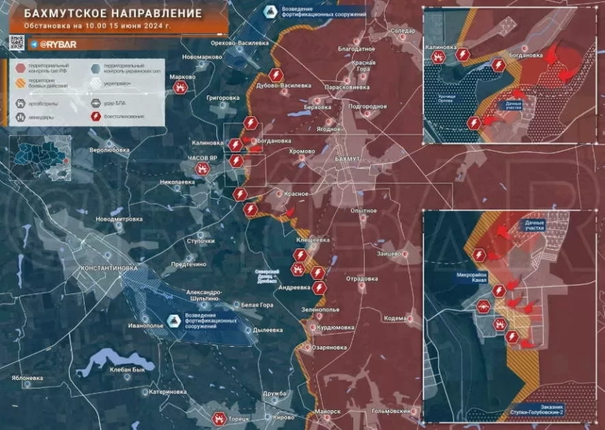 На Артемовском участке у наших есть успехи на северном фланге, у Калиновки. В Часов Яре не стихают бои за мкр Канал. ВСУ на сегодняшний день контролируют часть домов вдоль улицы Олега Кошевого.