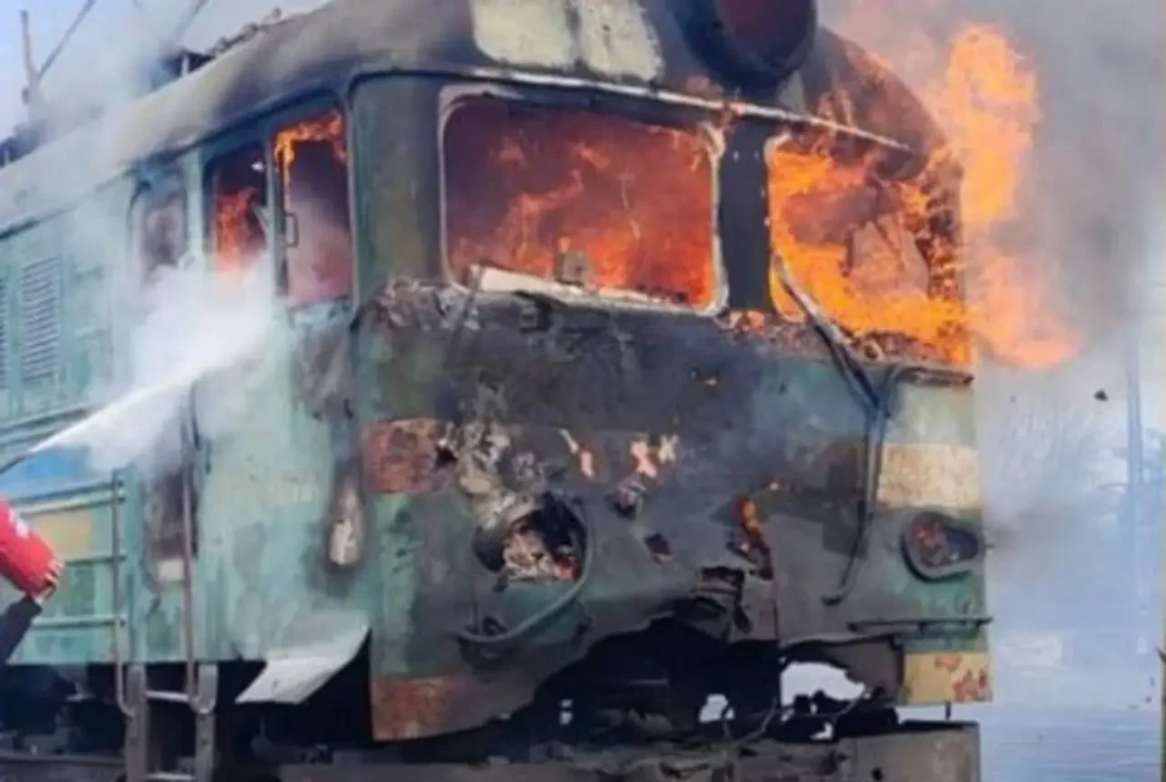 Беспилотная атака российских военных достигла цели. Был уничтожен локомотив. Его кабина сильно выгорела внутри.