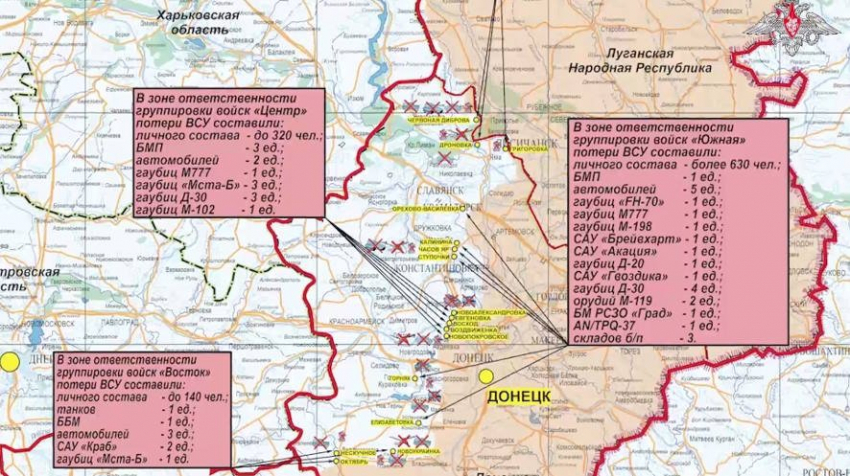 Как сообщил ТАСС начальник пресс-центра группировки Александр Савчук, в том числе были поражены 19 пунктов дислокации, а также 17 опорных пунктов и более чем 90 артиллерийских позиций противника.