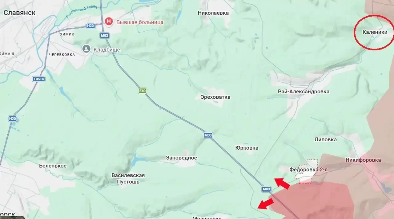 Подразделения российской армии освободили населенный пункт Каленики, расположенный к востоку от оккупированного ВСУ Славянска. После закрепления в Калениках ВС РФ получат возможность подтянуть на новые позиции ствольную артиллерию и расчеты БПЛА для ударов по позициям противника в Славянске.