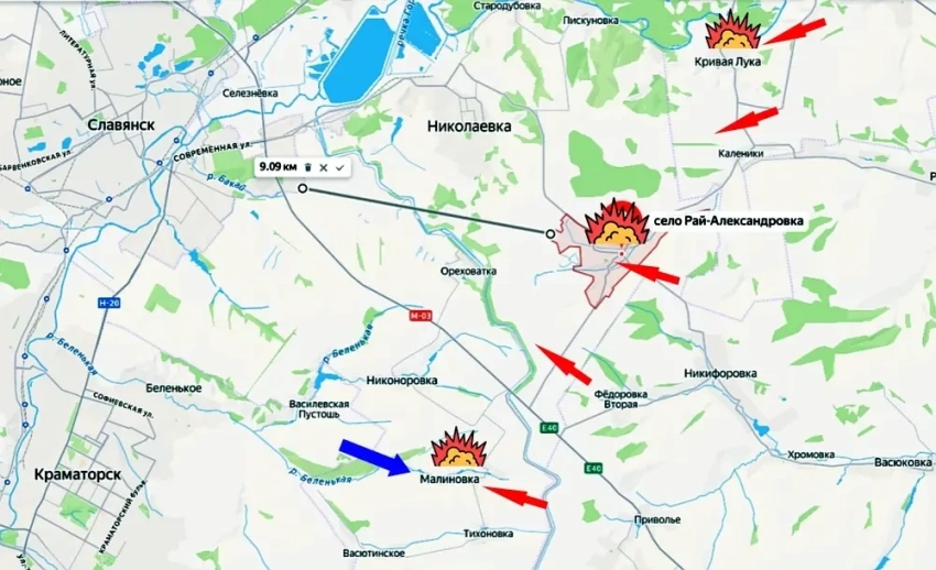 Севернее Рай-Александровки идут бои за село Кривая Лука. На южном фланге российские войска продвигаются у Федоровки Второй. Боестолкновения фиксируются у Дибровы и Липовки. Противник контратаковал и сумел вернуть часть утраченных позиций в Малиновке.