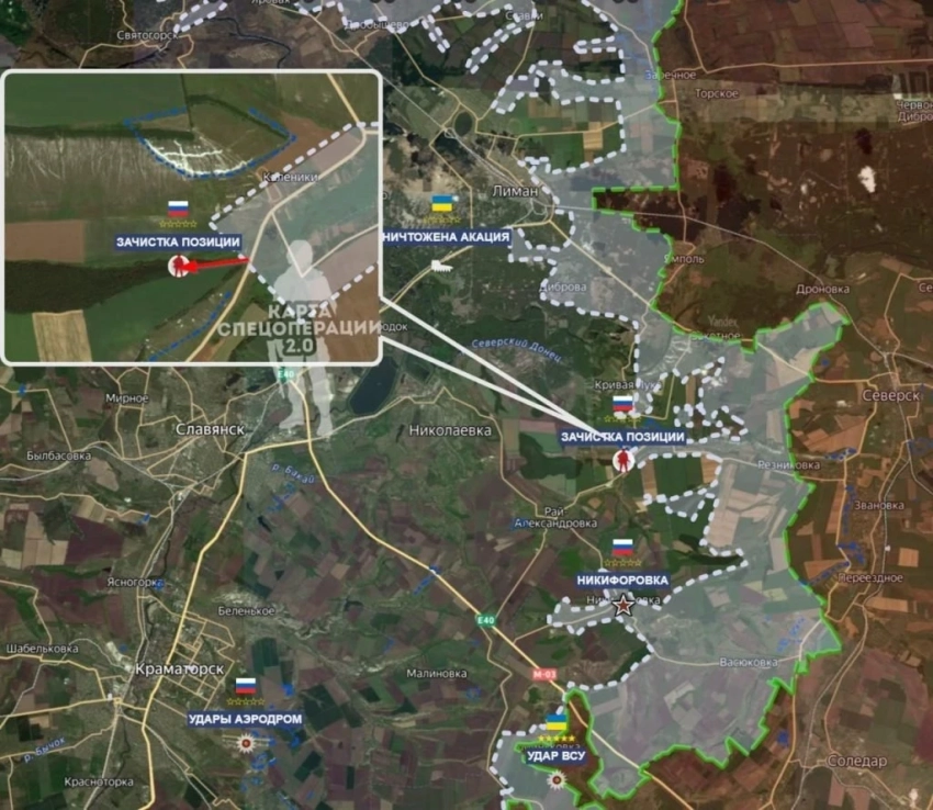 В своей последней сводке Юрий Подоляка особо выделил успехи Вооружённых сил Российской Федерации (ВС РФ) на Славянско-Краматорском направлении. Накануне Министерство обороны официально подтвердило освобождение населённого пункта Никифоровка.