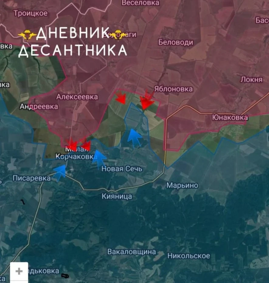 Российские подразделения впервые за долгое время добились значительного продвижения на Сумском направлении. Под контроль 30-го полка 44-го армейского корпуса ВС РФ перешел населённый пункт Малая Корчаковка.