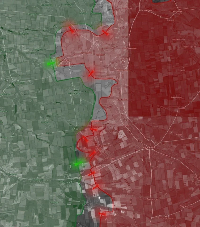 Одновременно фиксируется продвижение ВС РФ между Верхней Терсой и Воздвижевкой - последняя уже на 20% находится под контролем наших войск. В информационном поле ВСУ пытаются создать иллюзию успеха, публикуя видео с флагом в селе Бойково, однако реальный контроль над населенным пунктом остается предметом жесткого оспаривания.