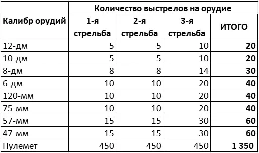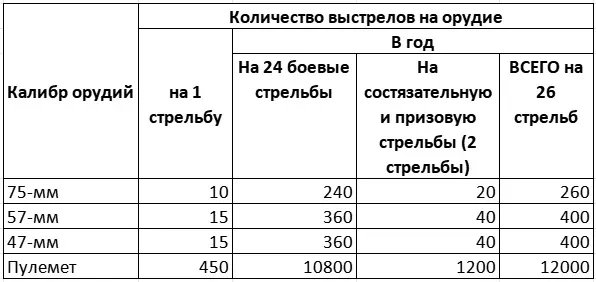 Можно предположить, что на состязательные и призовые стрельбы выделялось больше снарядов, нежели на обычные боевые. Если так, тогда расход снарядов составлял: