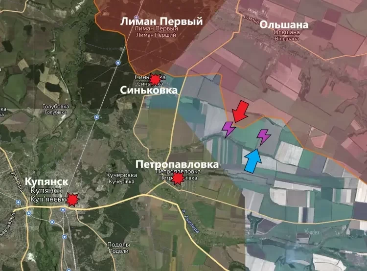 На Купянском направлении российские бойцы расширяют зону контроля юго-восточнее Синьковки после успешно занятия опорного пункта "Крюк". Также известно, что Вооружённые силы Украины (ВСУ) пытались атаковать чуть восточнее, но, потеряв танк и часть личного состава, откатились назад.
