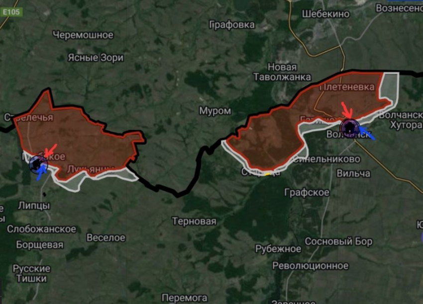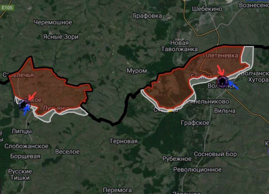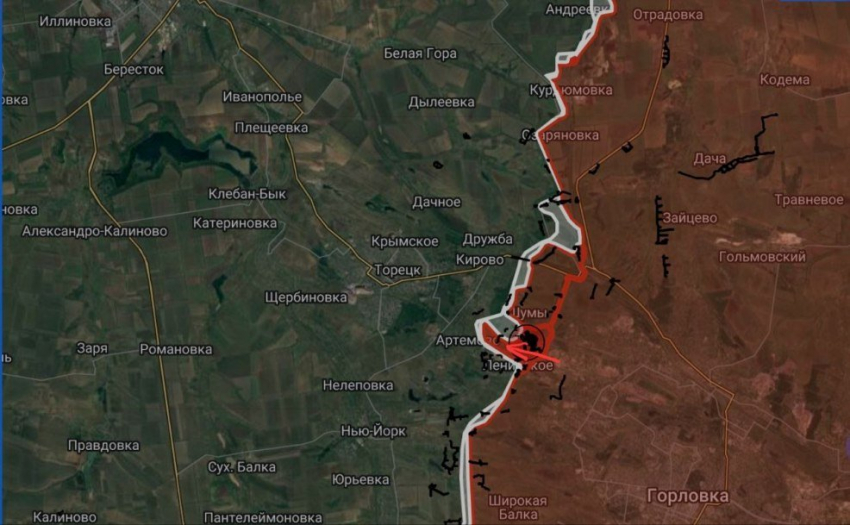В поселке Пивденое российские военные освободили улицы Красная и Лесная, а также сумели выйти к Горняцкой улице вдоль трассы в Пивничное по направлению посёлка Дружба.
