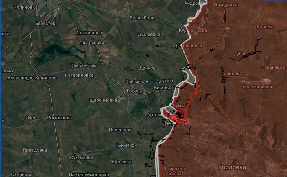 На Торецком направлении российские войска имеют тактические успехи в посёлке Южное (Пивденное) и на окраинах, продвинулись на участке шириной до 1.65 км на глубину до 2.3 км.