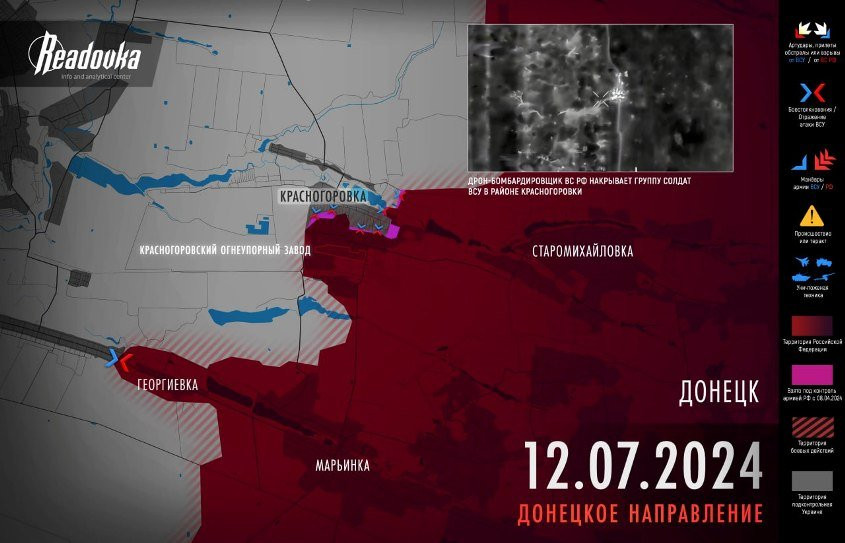 В Красногоровке ВСУ оставили превращенную в «укреп» горбольницу и отступили в сторону заброшенного пионерлагеря «Факел» в городском парке, а также в одноэтажную застройку. На такой шаг украинское командование пошло, вероятно, потому что уже не надеется удержать город и готовится к выводу сил из района намечающегося окружения в сторону колхоза имени Ленина, информирует Readovka.