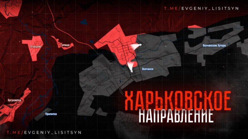 На Слобожанском направлении украинские силы проводят атаки малыми группами севернее Липцев, у Тихого, Глубокого и Волчанска. Российские войска продолжают наступление к востоку от Волчанска. Об этом в Telegram-канале сообщает военкор Евгений Лисицын.