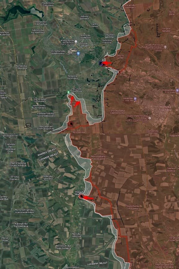 На Покровском направлении ВС РФ давят от Новоалександровки в направлении Воздвиженки, удалось закрепиться на восточной окраине села. Продолжаются позиционные бои в районе Лозоватского. Восточнее Прогресса ВС РФ продвинулись вдоль железной дороги и посадки на участке шириной до 1,12 км. В Евгеновке российские войска продвинулись в восточной части населенного пункта до 1 км. ВС РФ давят в северной и восточной частях Новосёловки Первой. Южнее российские войска имеют тактические успехи, закрепились вдоль лесополосы на участке шириной до 1.91 км. Восточнее Карловки продолжаются позиционные боевые действия.