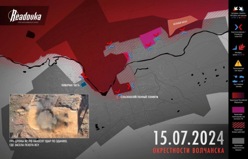 Обновлённая карта боевых действий на Украине по данным на 12:00 мск сегодня, 16.07.2024