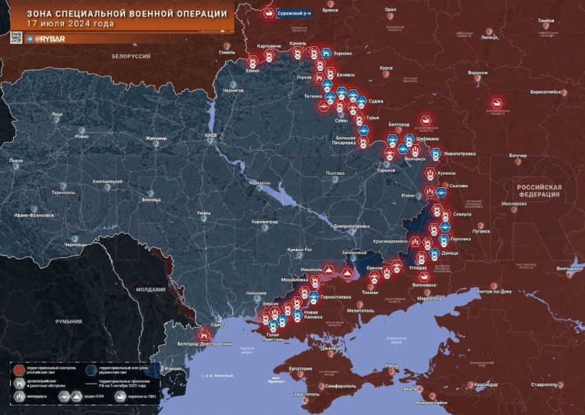 Новая карта боевых действий в зоне СВО на Украине сегодня, 18 июля 2024 года
