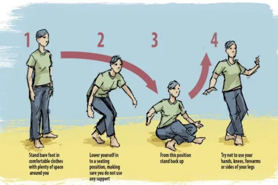Тест изначально использовался для проверки гибкости спортсменов, но теперь врачи используют его, чтобы показать пациентам, что им необходимо поддерживать мышечную силу и равновесие и в результате жить дольше.
