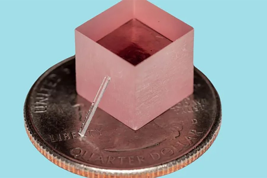 Исследователи из Стэнфорда создали титан-сапфировые (Ti:Sa) лазеры, которые в 10 000 раз меньше любых предыдущих подобных устройств, и поместили их на чип. До сих пор такие лазеры стоили более $100 000. Но с новым подходом, изложенным в журнале Nature ученые полагают, что стоимость может снизиться до $100 за лазер.