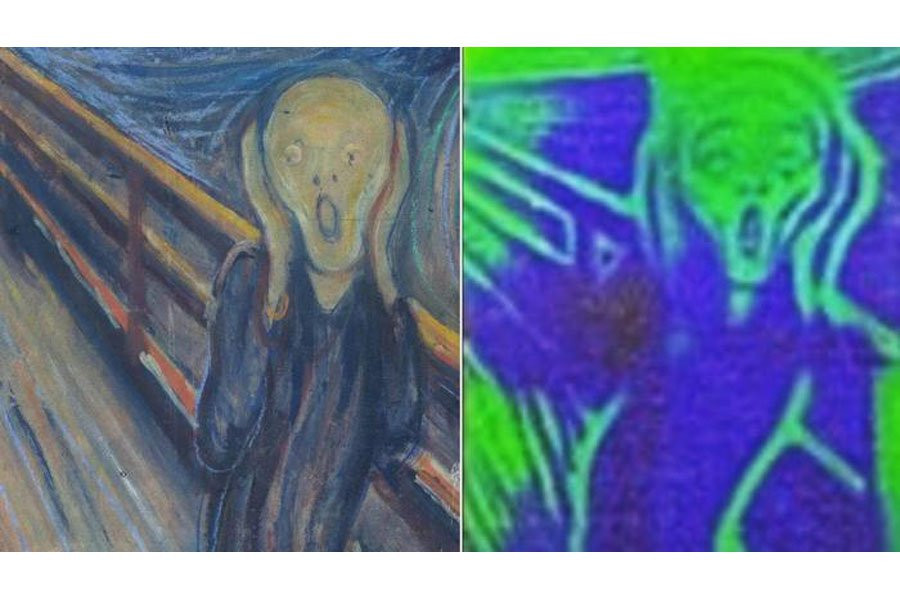 В качестве доказательства в исследовании приводятся яркие репродукции картин Эдварда Мунка «Крик» и Ван Гога «Звездная ночь». Изображения были получены в лаборатории Александра Липперта в Южном методистском университете с помощью микроскопа, переделанного в мини-проектор для слайдов.