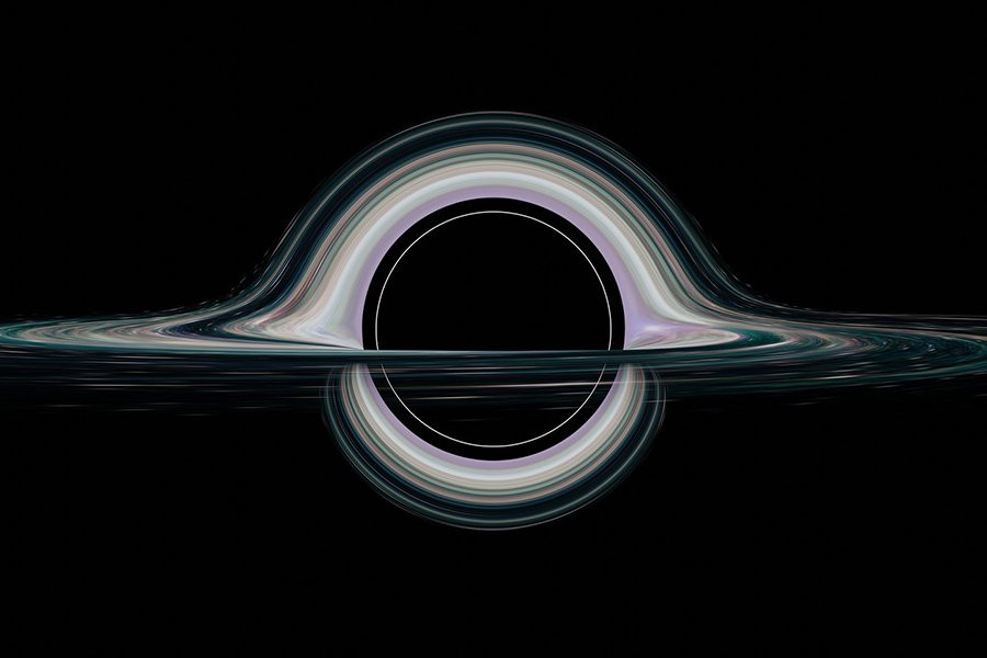 Вблизи черной дыры наша интуиция о поведении света рушится. Например, если мы представим себе вспышку света в пустом пространстве, мы поймем, что свет от этой вспышки распространяется во всех направлениях, как рябь на пруду. Если мы наблюдаем эту вспышку издалека, мы знаем, что свет прошел по прямой линии, чтобы достичь нас. Вблизи черной дыры это не так.
