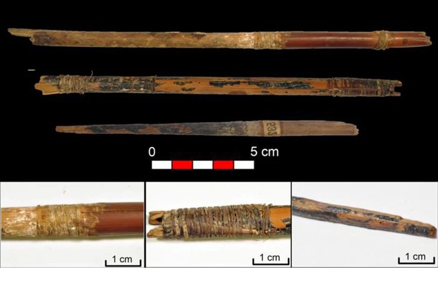 Наконец, древки стрел были покрыты берестяной смолой — материалом, полученным путем контролируемой термической обработки коры этого дерева, который использовался не только из-за его защитных свойств, но, вероятно, и в декоративных целях, что придавало снаряжению эстетическую и функциональность.