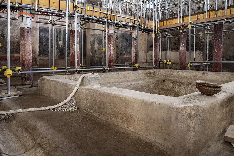 Домашний спа-центр является одним из крупнейших из немногих подобных сооружений, найденных на сегодняшний день в археологическом парке Помпеи на юге Италии.