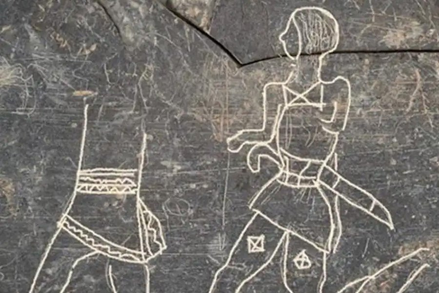 На пресс-конференции группа экспертов CSIC подчеркнула важность обнаруженной сланцевой мемориальной доски, на которой изображены четыре человека, идентифицированные как воины, учитывая их украшенную одежду и оружие, которое они носят.