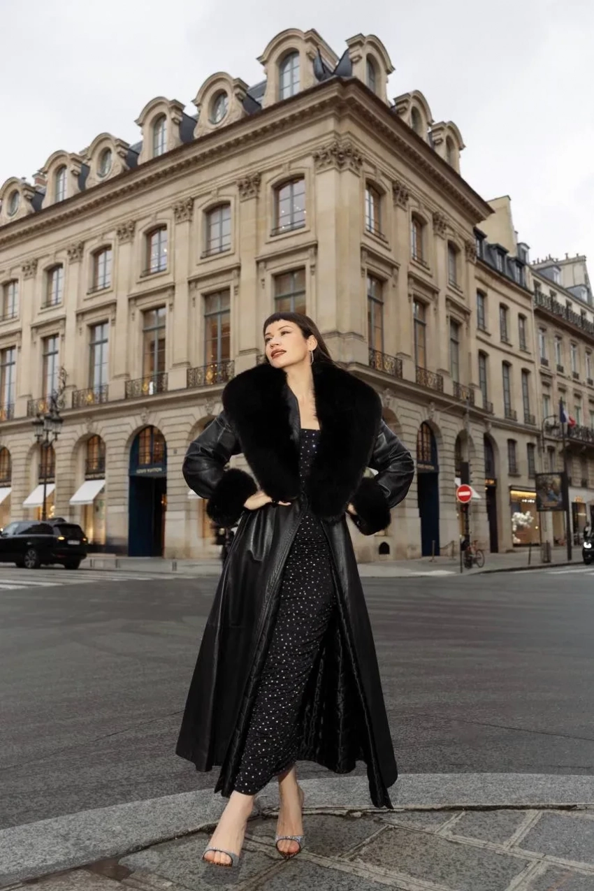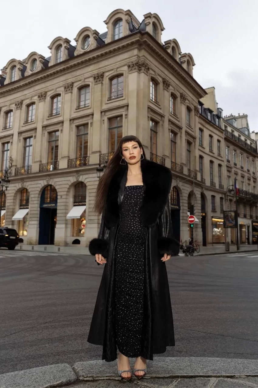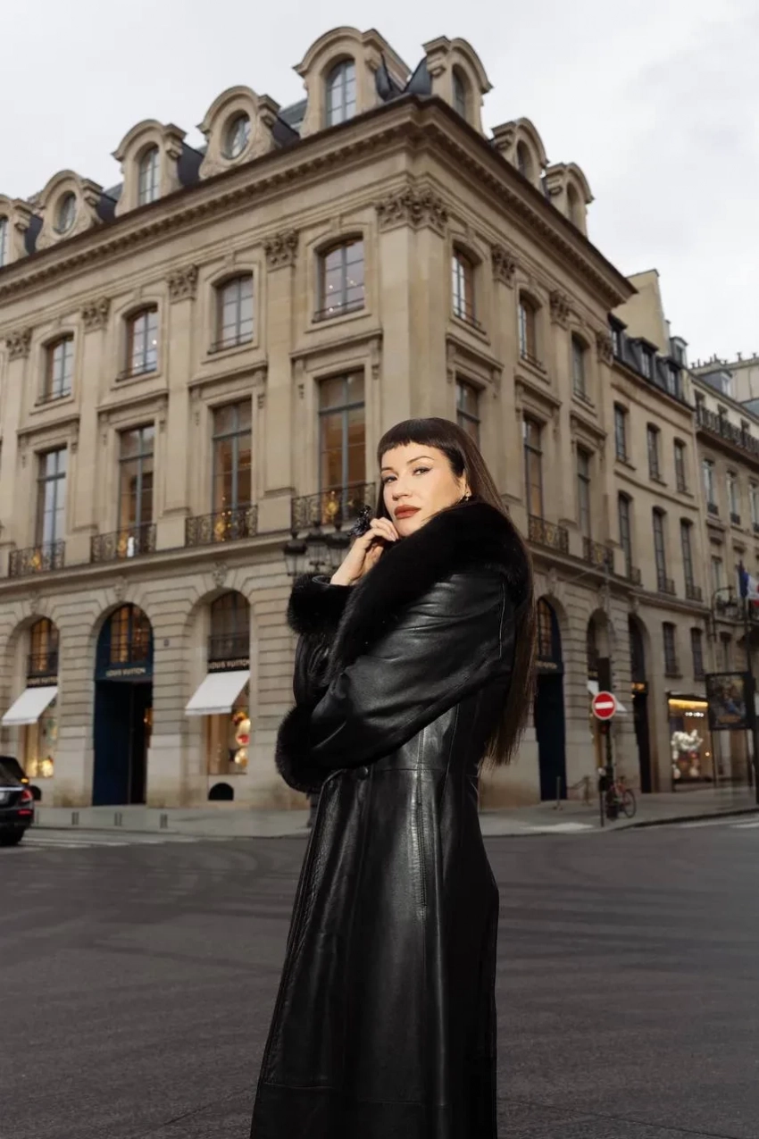 "Жених купил". Ида Галич привезла на Неделю моды в Париж "мамино" кожаное пальто из 90-х
